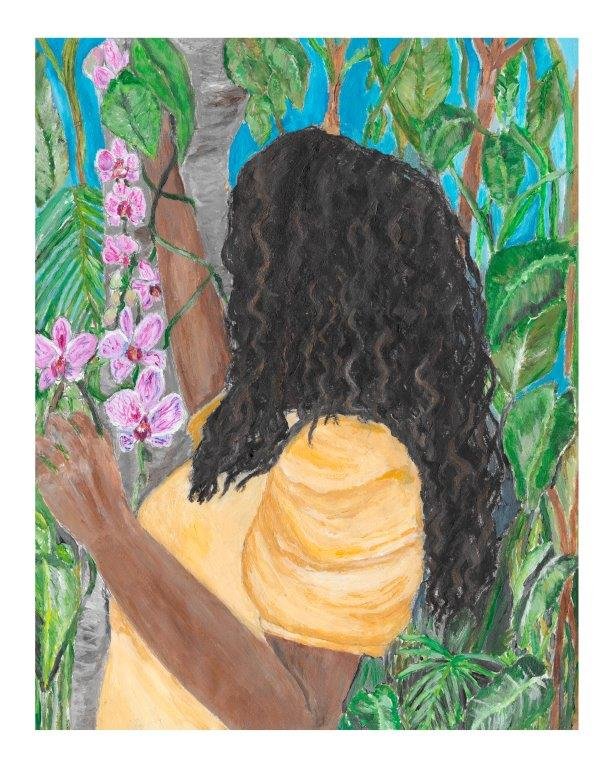 orchid series, 11” x 14”, acrylic and thread on paper, 2025